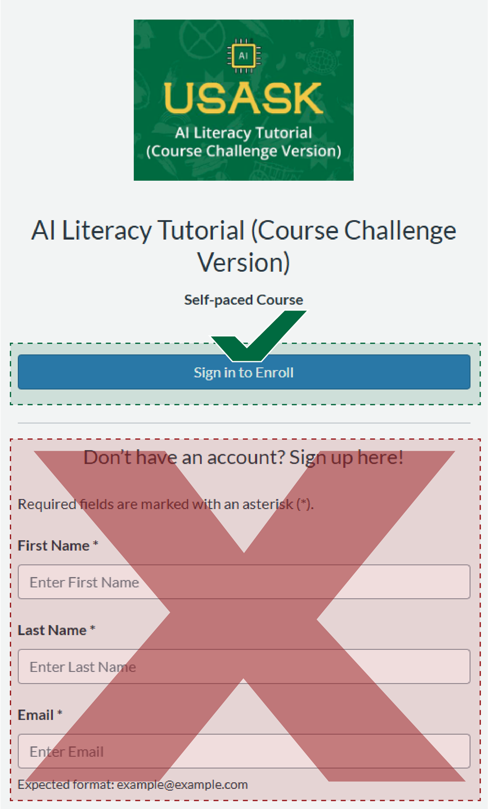 ATTENTION: Do NOT Sign up! You only need to select the "Sign in to Enroll Button"